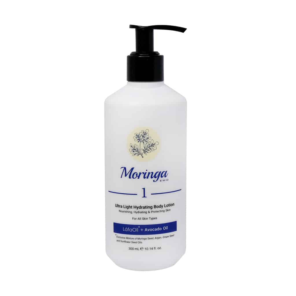 حجم 300 میل_لافاایل_روغن آواکادو لوسیون بدن فوق سبک و آبرسان 1 مورینگا امو مناسب انواع پوست است که به جوان سازی و سلامت کلی پوست کمک میکند. این محصول حاوی روغن آووکادو است که سلامت و شادابی پوست را به ارمغان میآورد