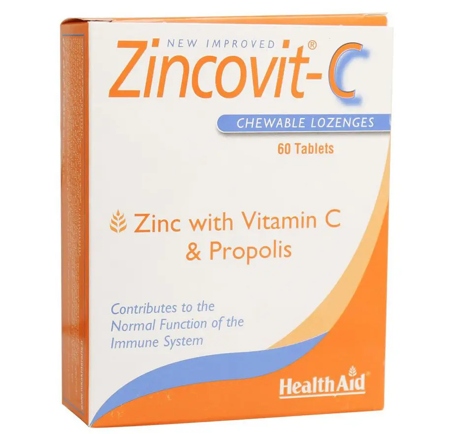 قرص جویدنی زینکوویت ث (Zincovit-C) از برند هلث اید (HealthAid) یک مکمل تقویتی است که با ترکیبی از ویتامین C، روی (Zinc) و پروپولیس (Propolis) طراحی شده است.این محصول با طعم دلپذیر و قابلیت جویدن، به تقویت سیستم ایمنی بدن کمک میکند و در پیشگیری و کاهش مدت زمان سرماخوردگی، آنفولانزا و گلودرد مؤثر است.زینکوویت ث در بستهبندی ۶۰ عددی عرضه میشود و برای استفاده در تمام طول سال، بهویژه در فصل زمستان، مناسب است.