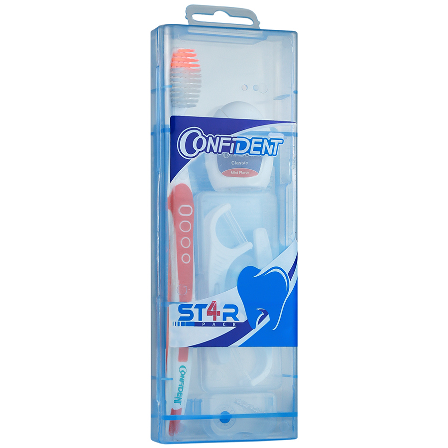 استار پک شامل: مسواک بزرگسال، نخ دندان کلاسیک، درپوش با نشانگر تعویض و نخ دندان کمانی